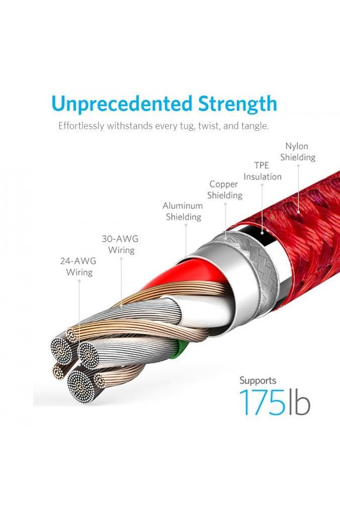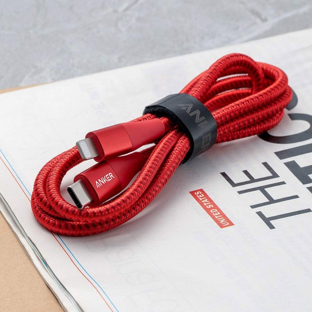 أنكر باور لاين + III USB-C إلى Lightning (1.8 م / 6 قدم) – أحمر