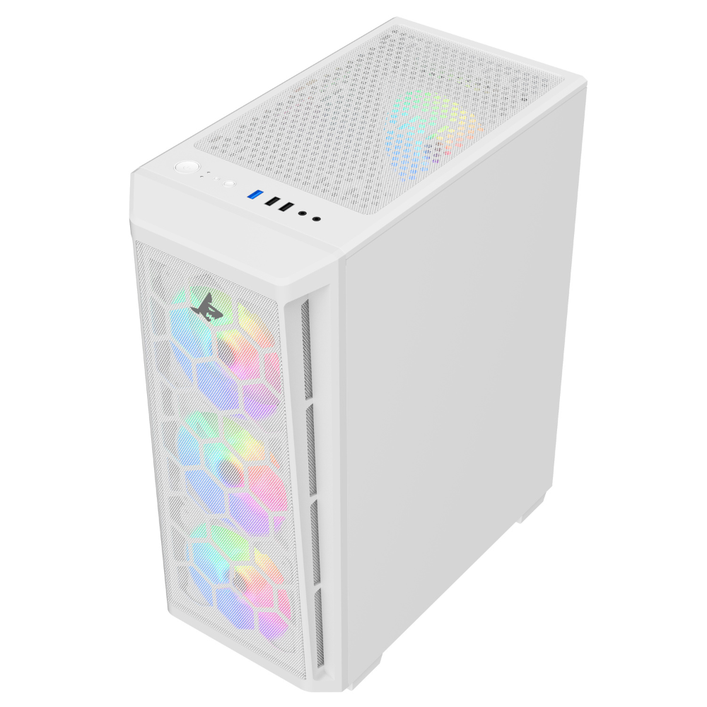 - شاركس R200W صندوق كمبيوتر ألعاب متوسط الحجم – أبيض (4 مراوح)