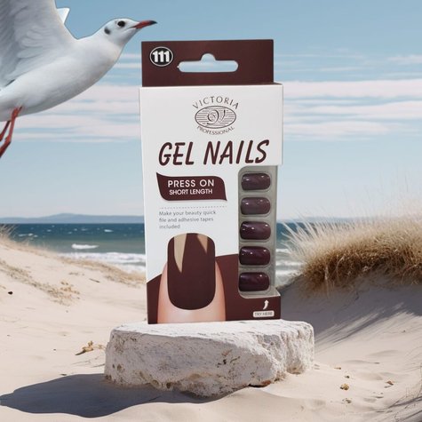 VICTORIA GEL NAILS 111 Perfect for everyday wear, this is the perfect set. With a glossy finish, these medium length fake nails are slimmer on the sides and rounded on top to make fingers look slimmer without being too sharp. Victoria Nail Glue