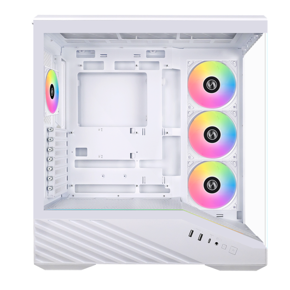 - كيس الحاسوب المخصص للألعاب Lian-Li Vector V100 من نوع Mid-Tower مع 4 مراوح (باللون الأبيض)
