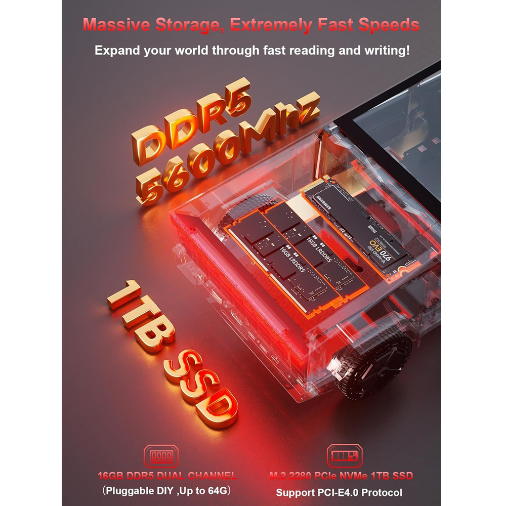 كمبيوتر ألعاب صغير Cyber Truck بمعالج Ryzen 7 8845HS وذاكرة 16GB RAM وقرص 1TB SSD ونظام Windows 11
