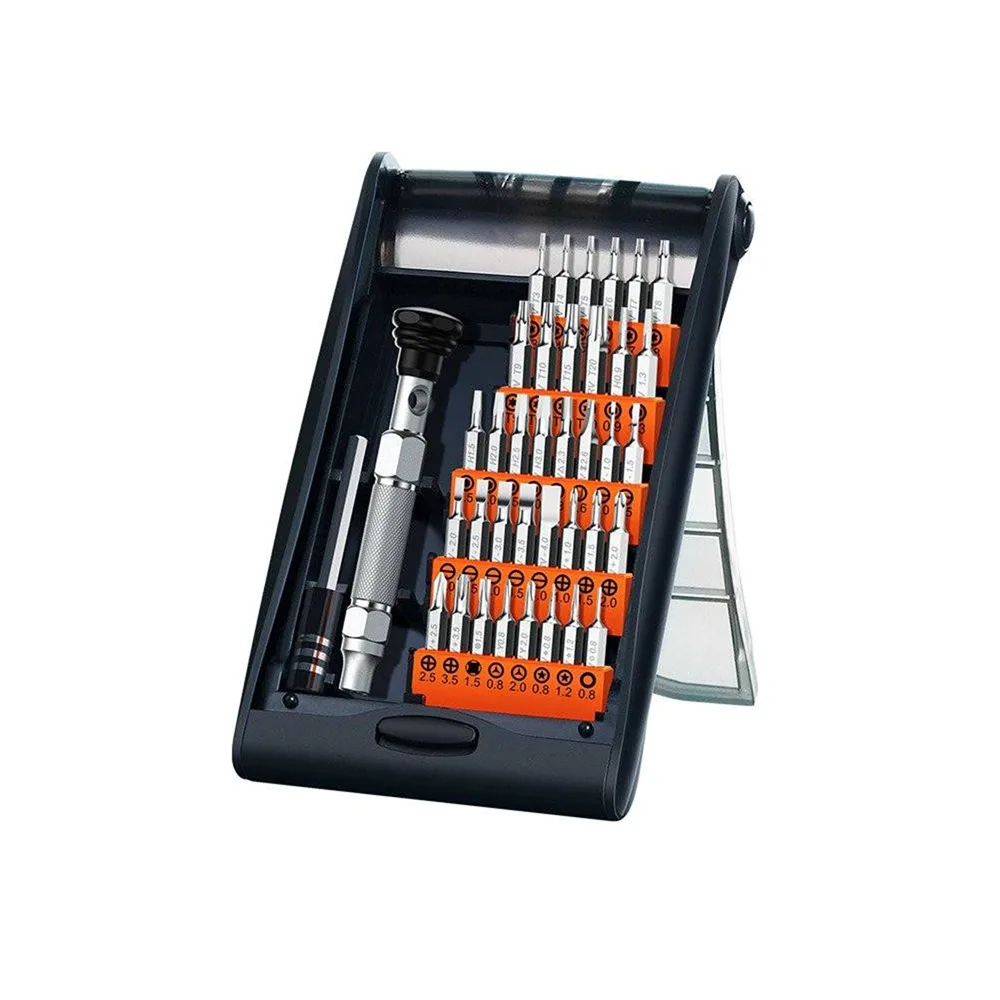 تصميم متعدد الرؤوس 38 في 1: يتضمن 38 رأساً دقيقاً لمفك البراغي لاستخدامات متعددة في الأجهزة الإلكترونية، أجهزة اللابتوب، الهواتف، ومشاريع الصيانة الذاتية (DIY).