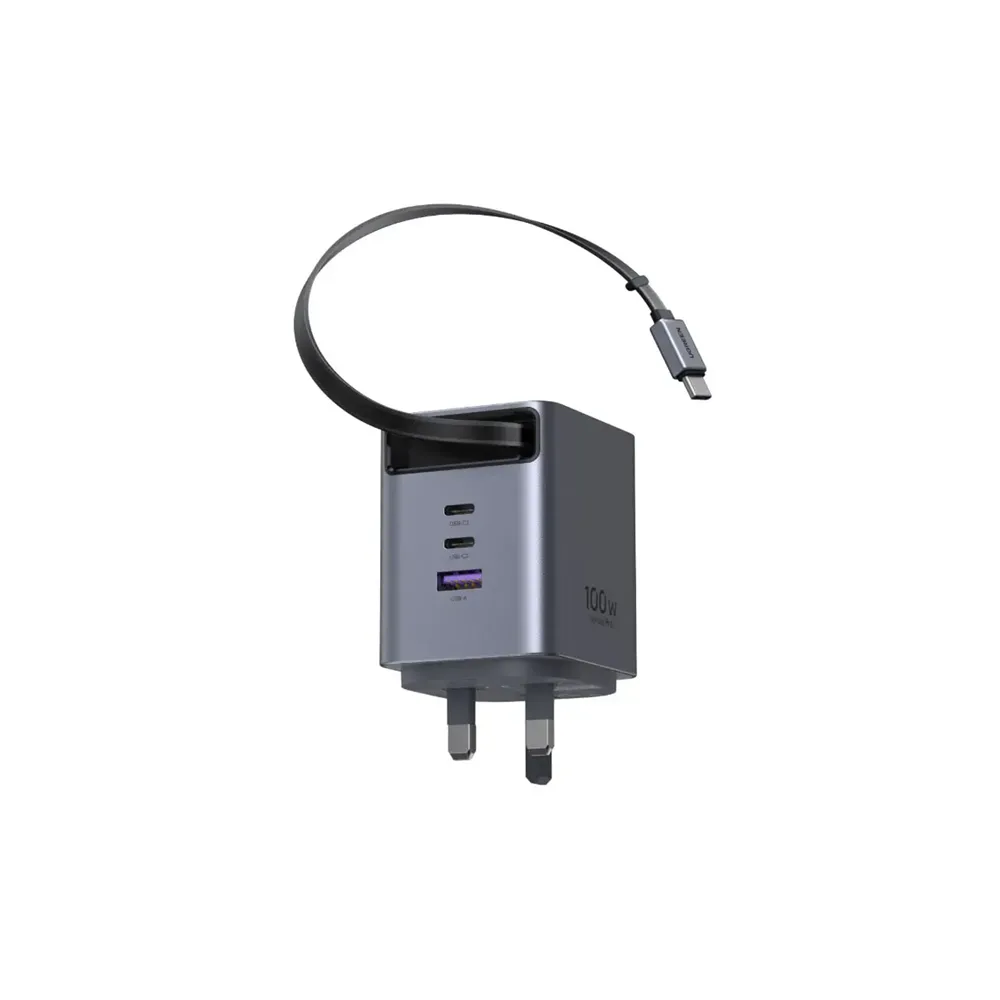 - 100W Fast Charge & Retractable Cable: Charge MacBook Pro 54% in 30 mins with a clutter-free coiled cable.