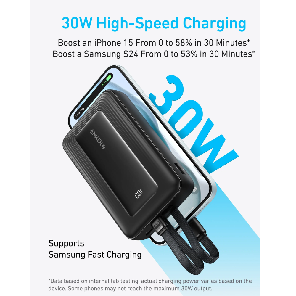 Anker Zolo Power Bank (20K, 30W, Built-In USB-C and Lightning Cable) -Black