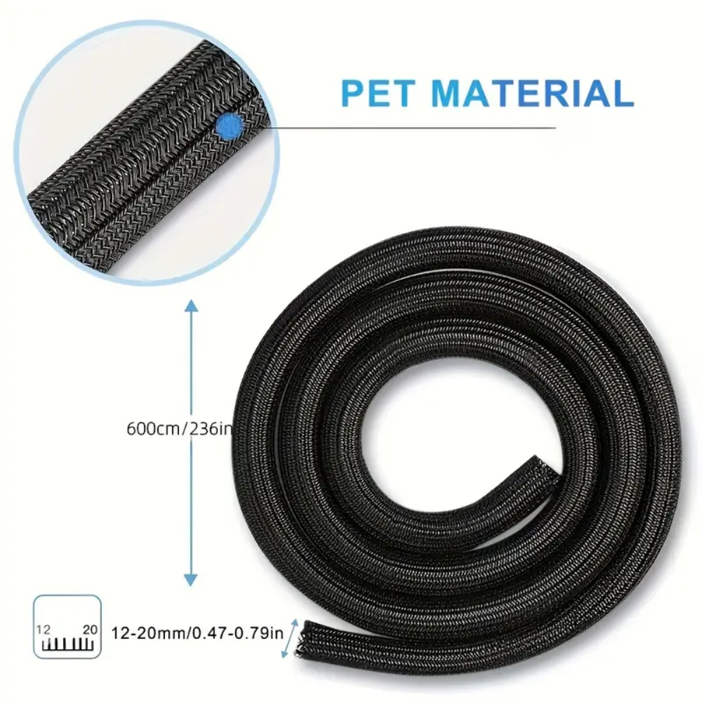 Braided Cable Management Sleeve Cord Protector – 236IN/600CM