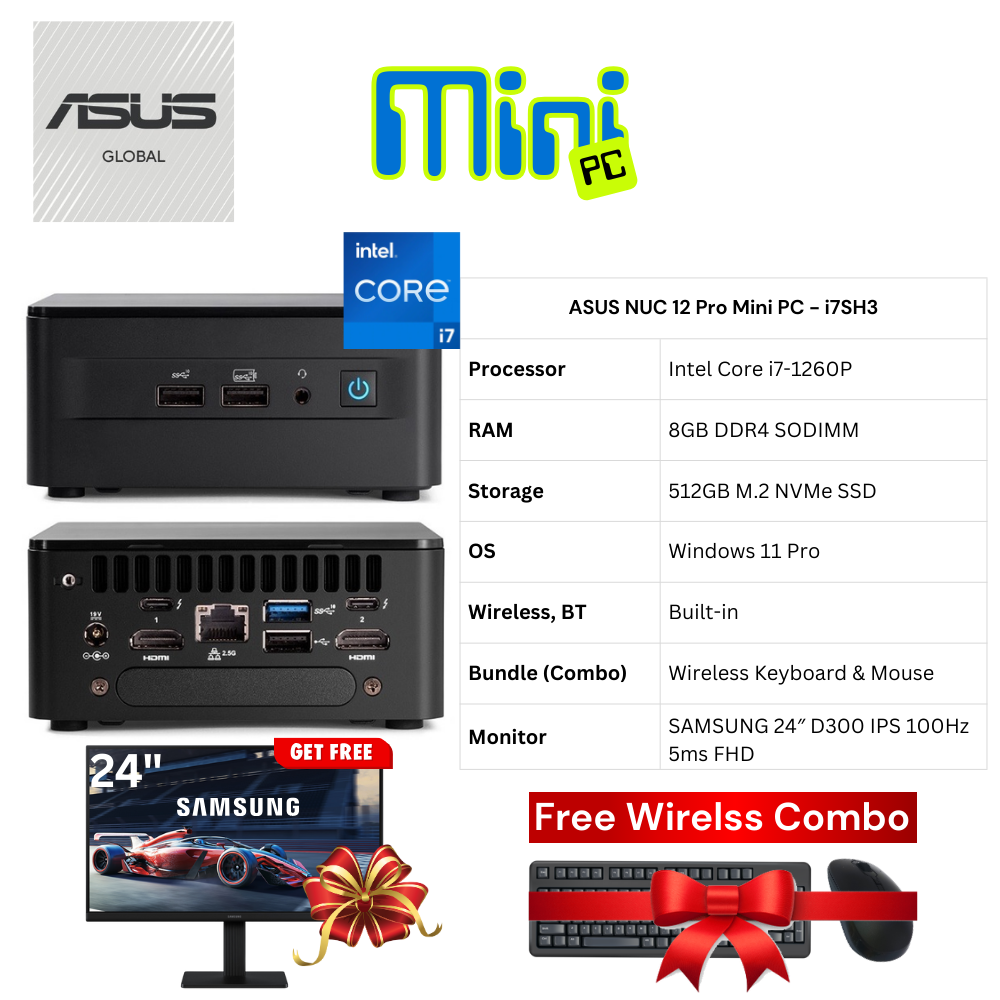 - ASUS NUC 12 Pro Mini PC i7-1260P, 8GB RAM, 512GB SSD, W11Pro