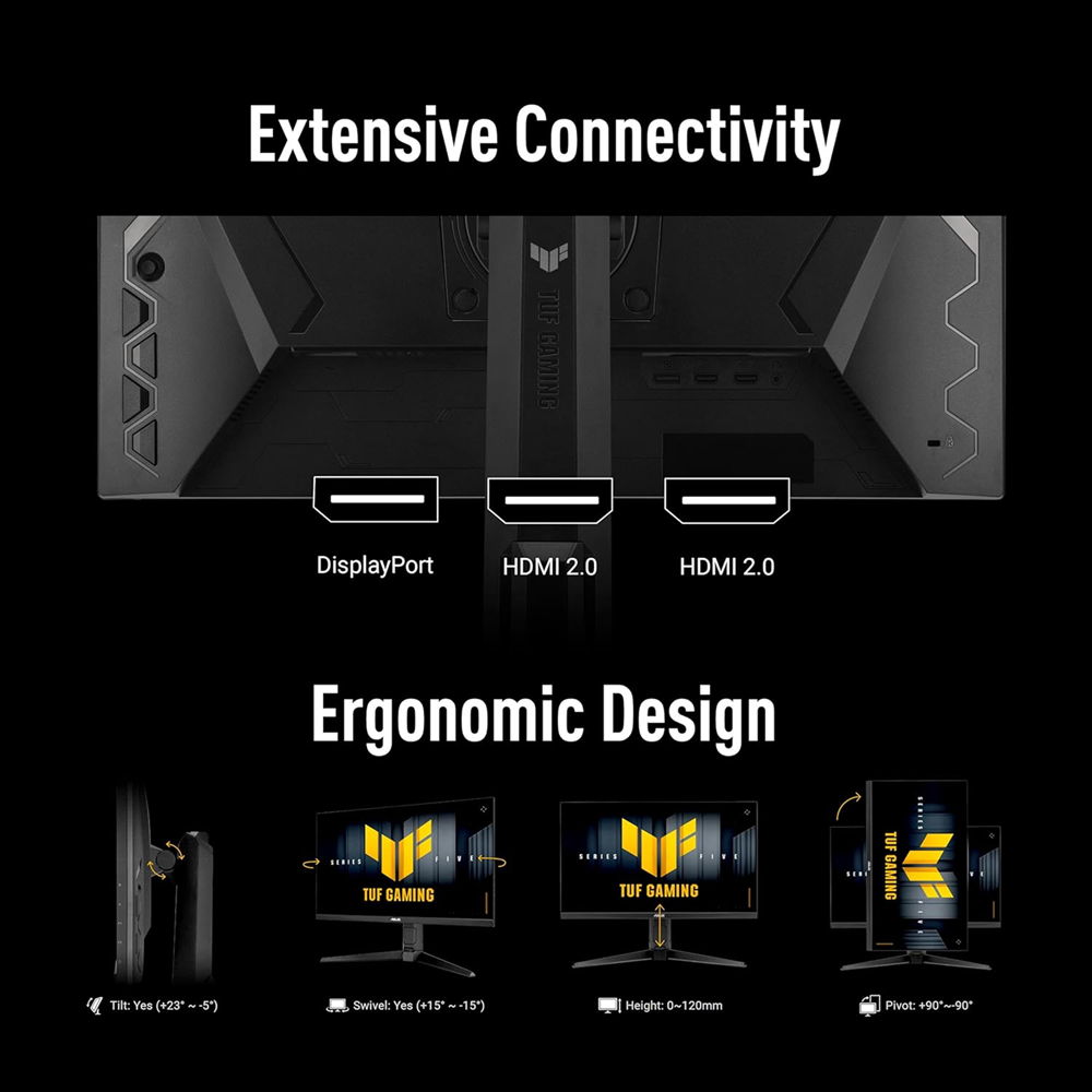 - ASUS Fast IPS technology enables a 0.3ms (min) response time for sharp gaming visuals with high frame rates