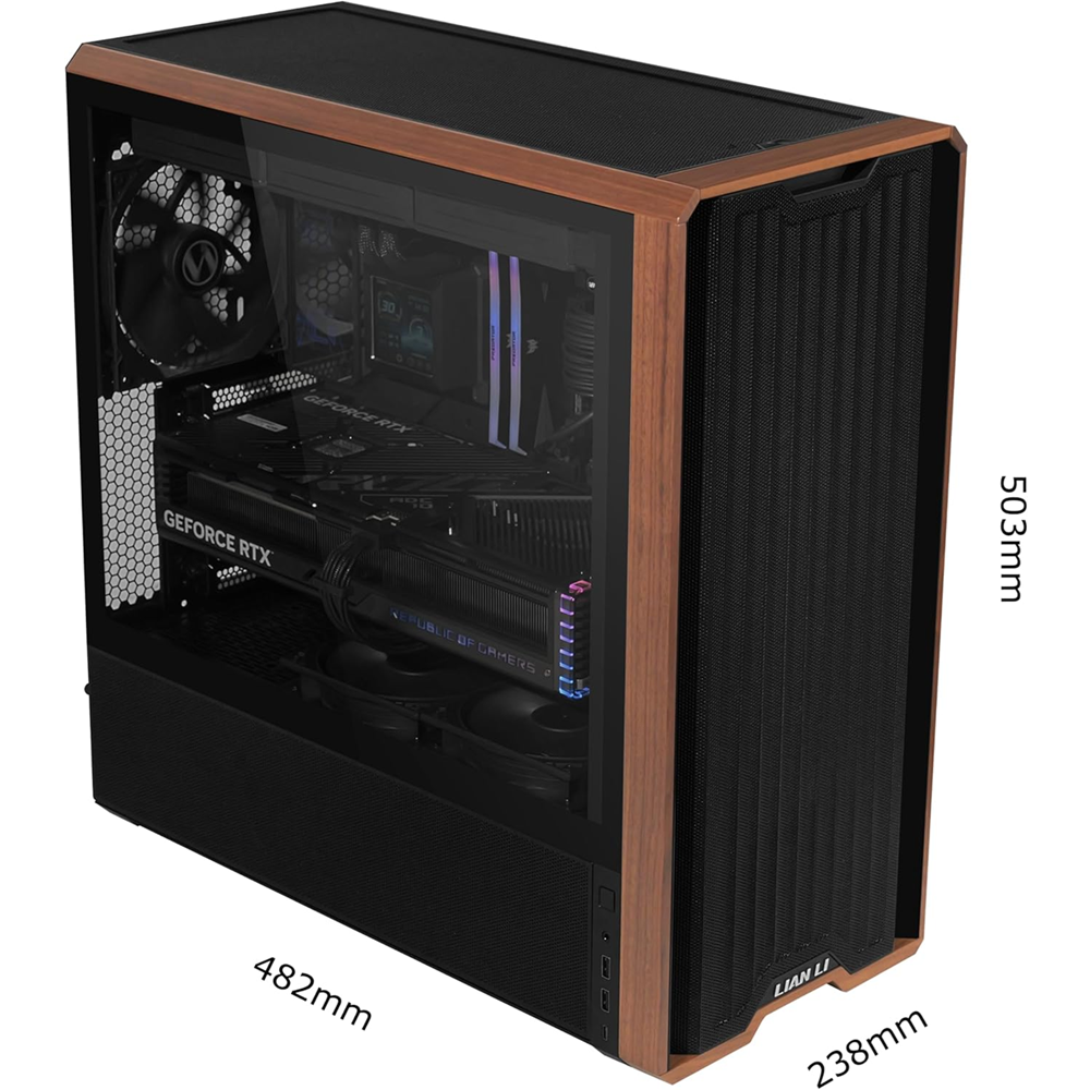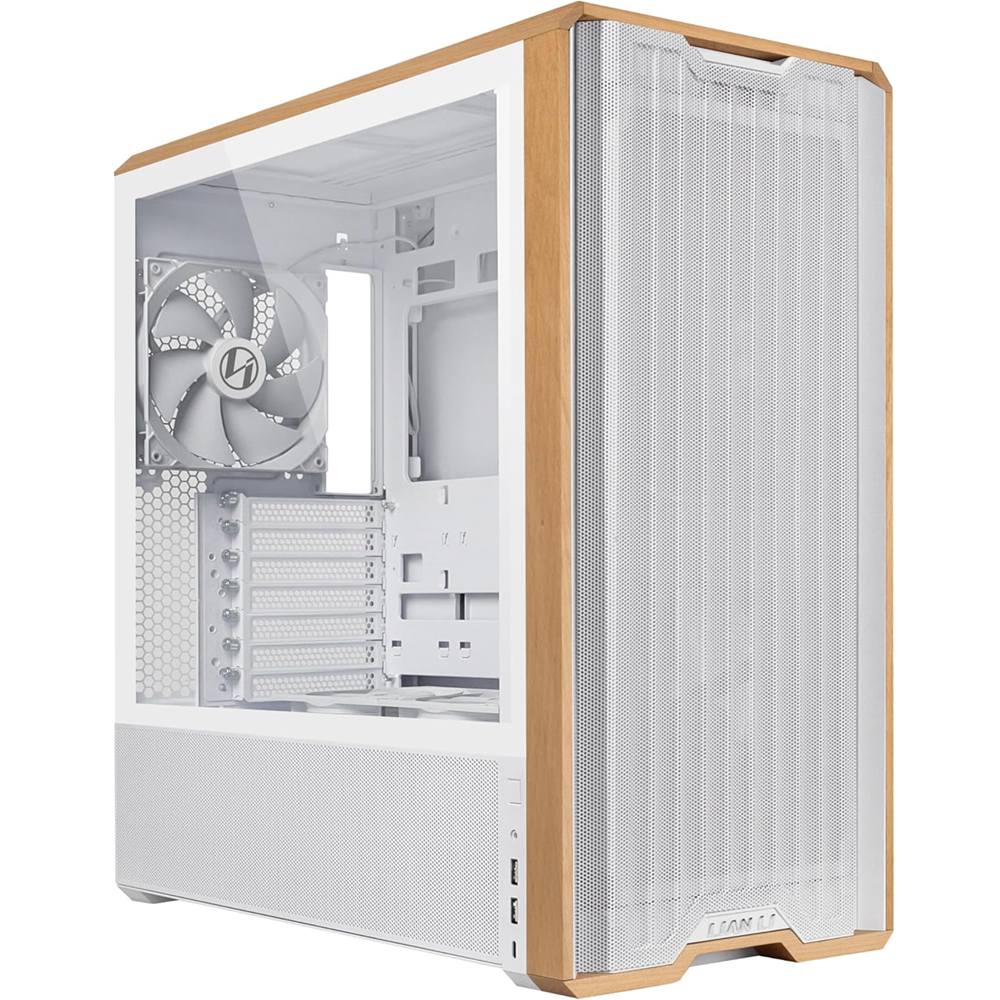 - LIAN LI LANCool 217 White Tempered Glass Wood Panel Mid Tower PC Gaming Case, 5-Fans