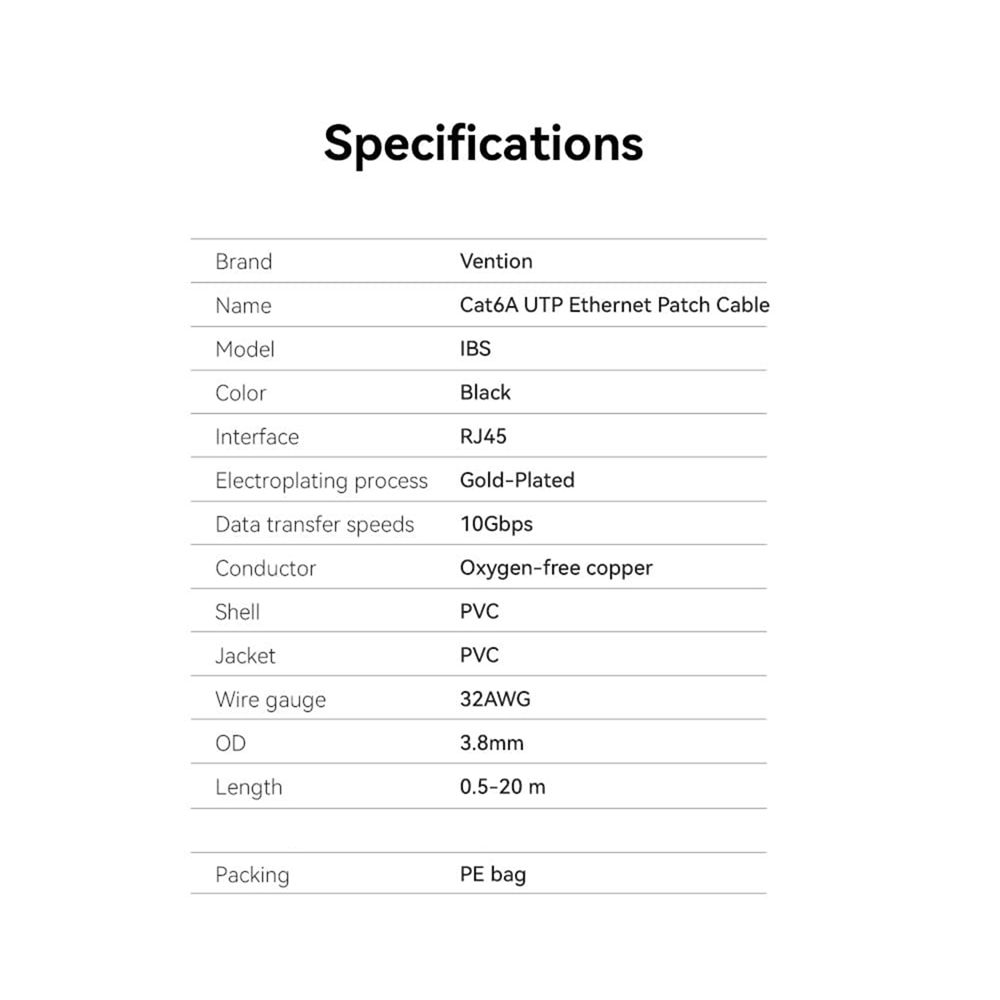 Introducing the Vention Cat6A UTP Ethernet Patch Cable—a game-changer in the world of network connectivity. Designed for those who demand the best in speed, efficiency, and versatility, this Ethernet cable stands out with its forward-thinking features and robust construction. Whether you’re a gamer seeking the lowest latency, a professional needing reliable connections, or simply upgrading your home network, this cable ensures you get the highest network performance without compromises.