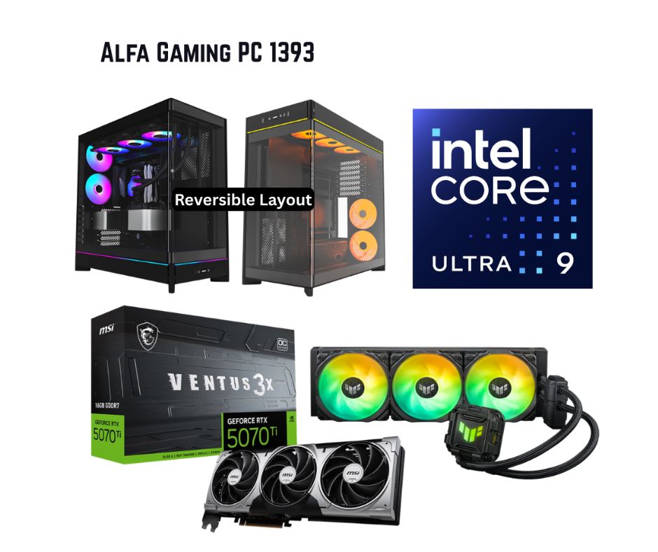 - Alfa Gaming PC 1393, Intel Ultra 9, 16GB RTX5070Ti, 32GB RAM, 2TB NVMe, Montech HS02, W11Pro