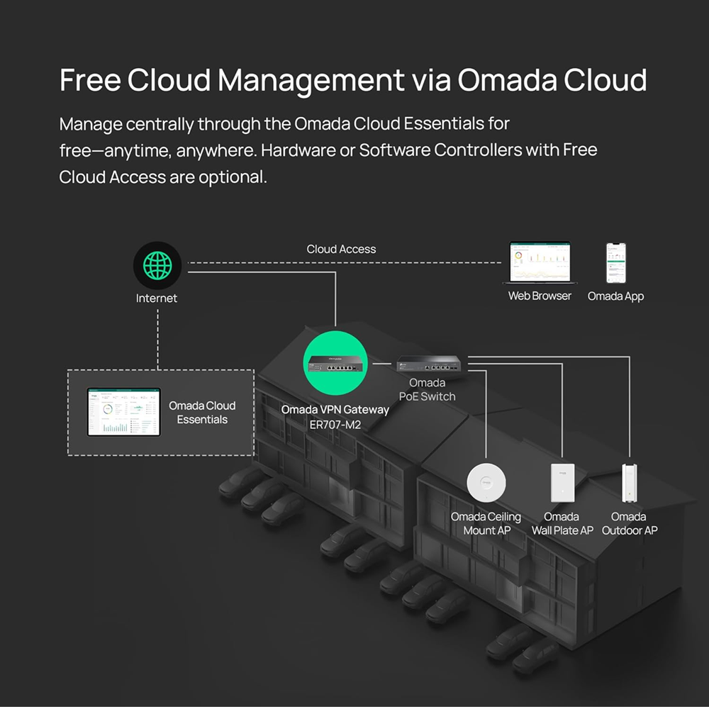 As the router that seamlessly integrates into the Omada Software Defined Networking (SDN) platform, ER707-M2 allows for remote and centralized management, anywhere, anytime. Standalone management via the Web UI or app is also available to maximize convenience.